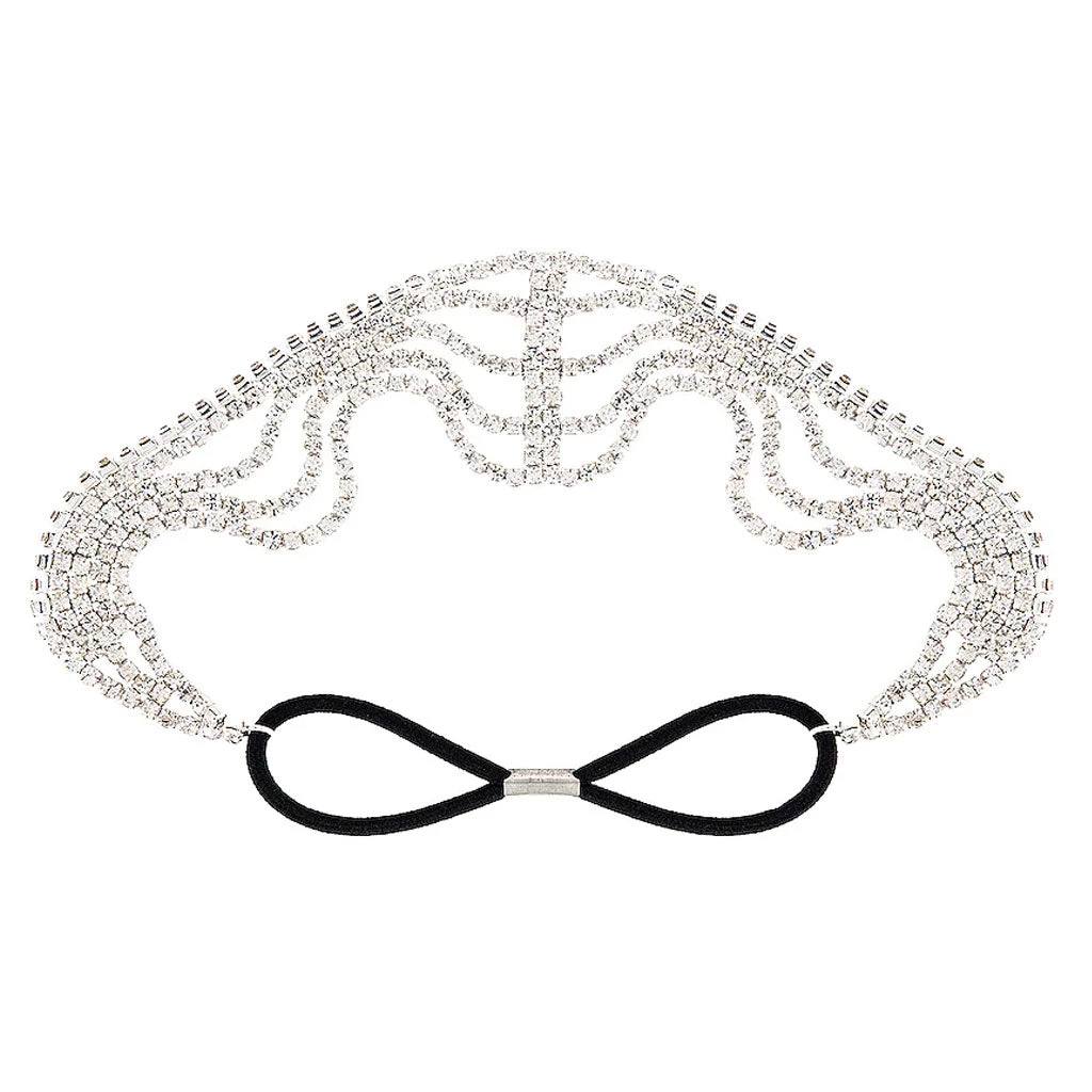 This stunning headband is the perfect addition to your evening look. Made of silver-plated hardware fabric, embellished with its full rhinestones encrusted surface, featuring a circular cut shaped band structured with tiered rows and finished with an elastic pullover style. Find more trendy women’s headbands or unique hair accessories in our boutique, and accessorize your bridal ensemble with this glamour number.