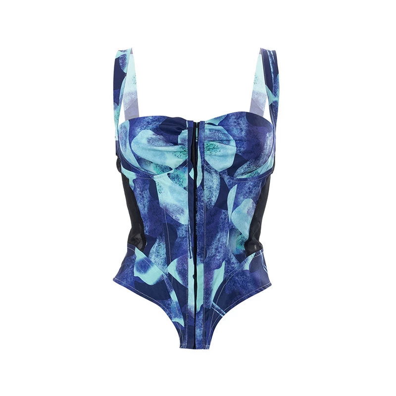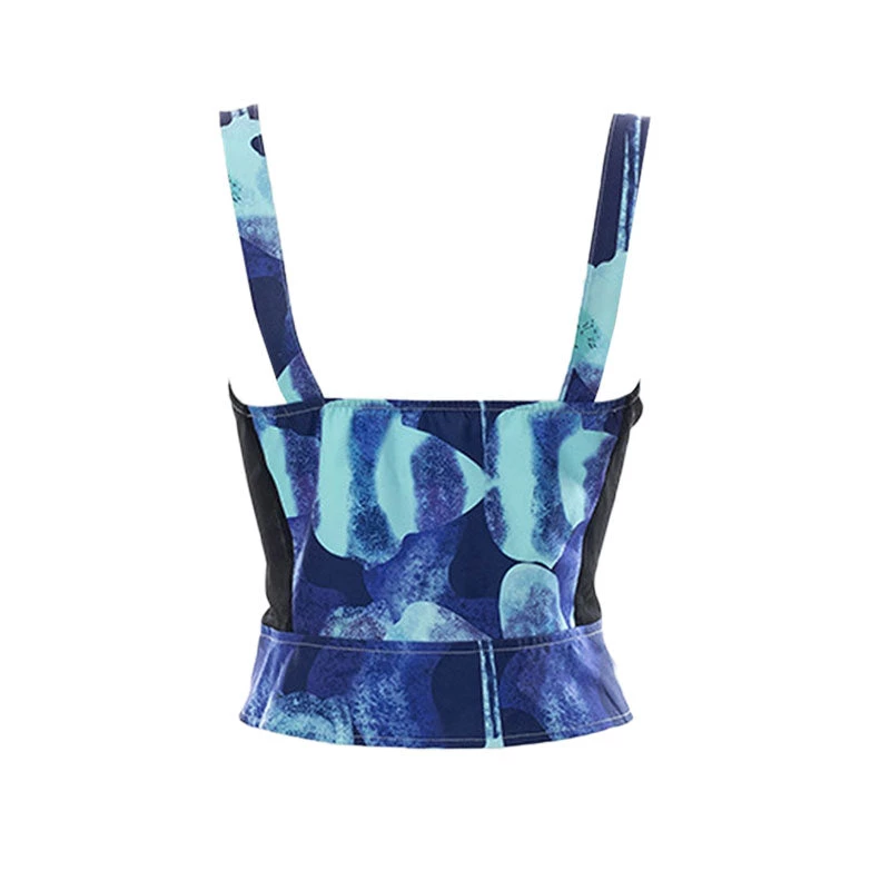 This summer style printed top is a popular pick for sunny days. Crafted with polyester, embellished with colorful tie-dye print making this basic top not so basic, featuring a sleeveless silhouette tailored with a sweetheart neckline, wide straps on the shoulders, a hook & eye placket to the front while semi-sheer mesh panel at sides, and a crop profile accented with a curvy hem at the waist. Find more trendy women’s tank tops or unique clothing in our boutique, and just layer with everything as a cute daytime outfit or a sexy night-out look.