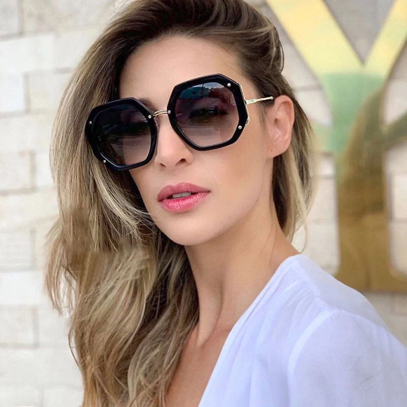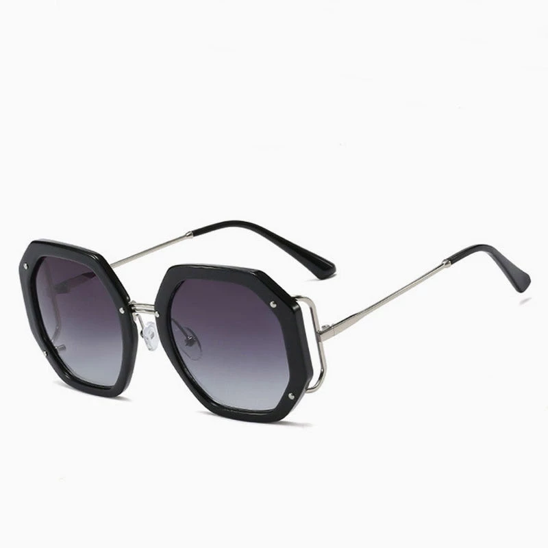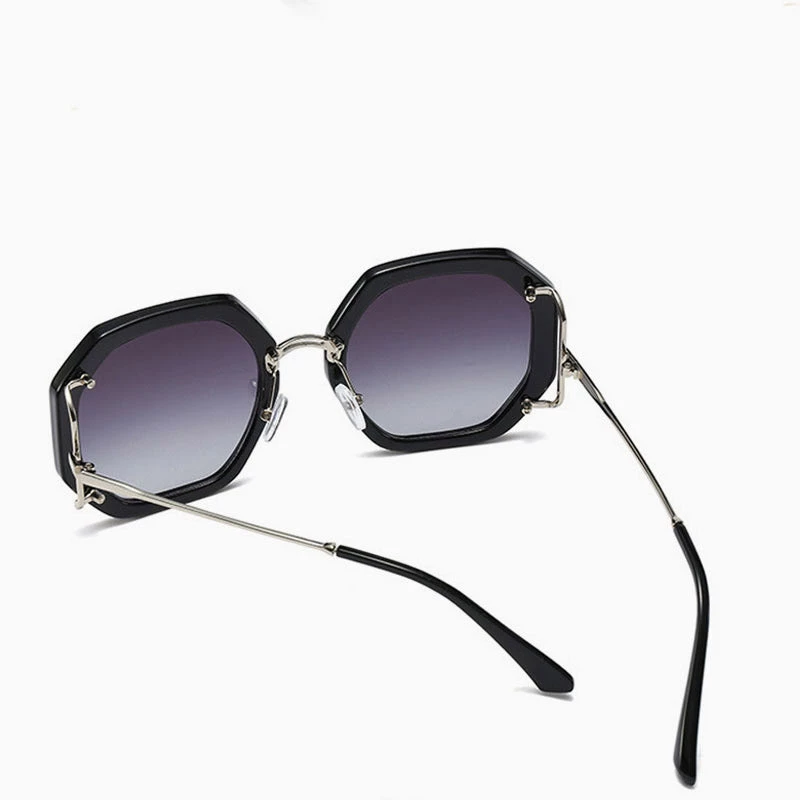 The pair of asymmetric sunglasses gives a cool and stylish feel. Crafted from PC and stainless steel, embellished with a hexagon frame, featuring gradient colored lenses along with a double nose bridge, and gold-tone straight arms with curved tips. Find more unique women’s sunglasses and trendy eyewear in our boutique, and complete a retro street look with our accessories.