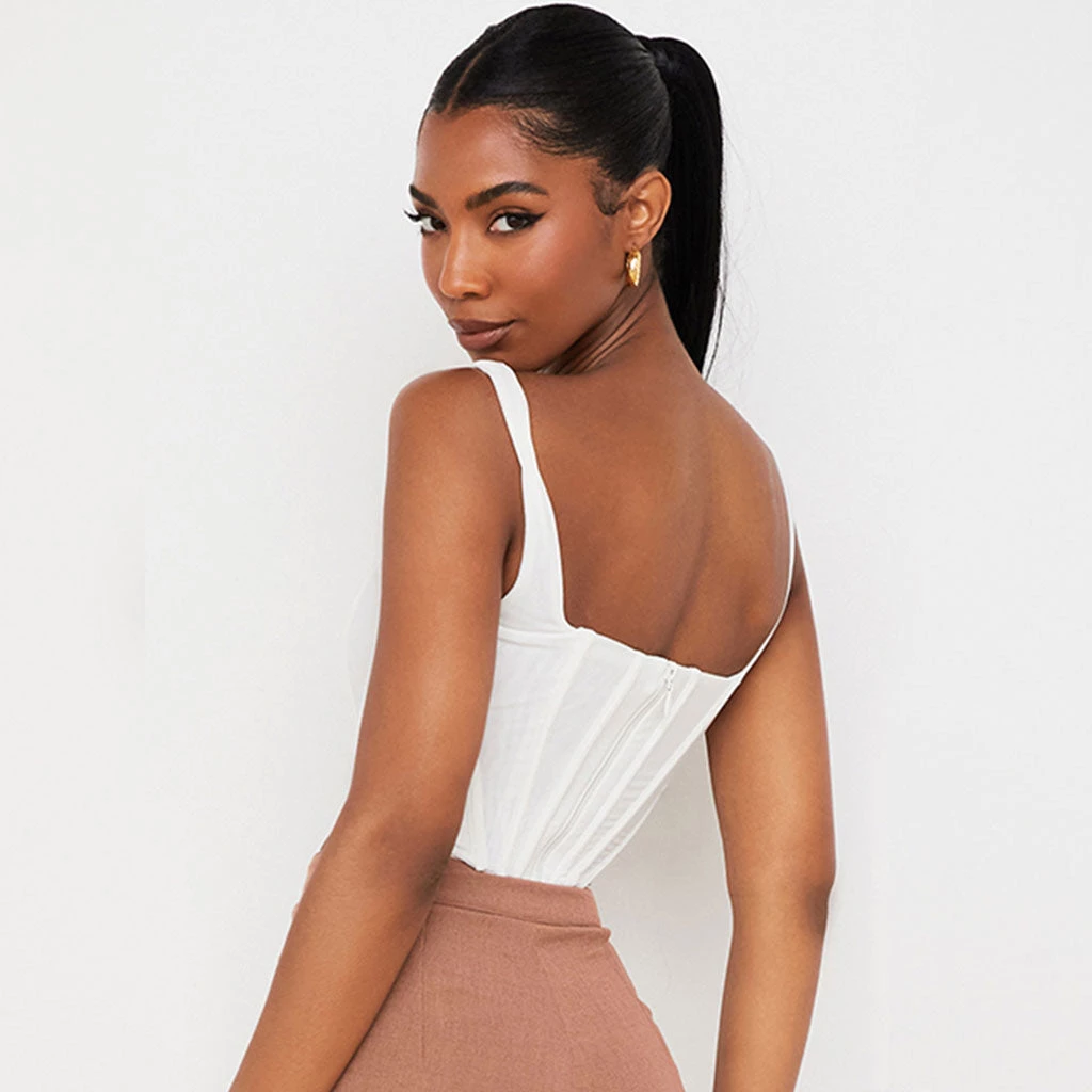 Trendy & Unique What’s New Trendy Suspender Strap Square Neck Crop Corset Top – White