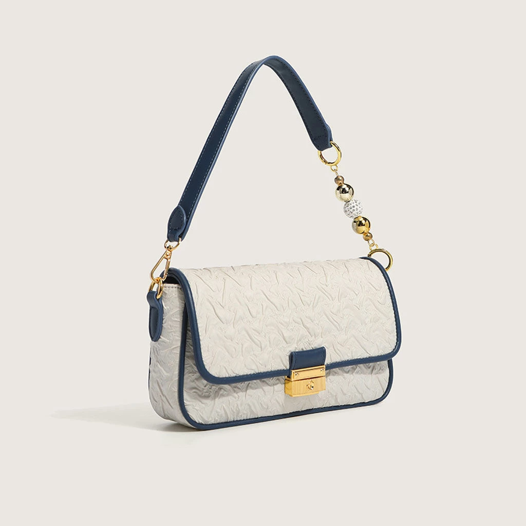 This pretty shoulder bag is refined yet feminine option for everyday dressing. Made of PU leather and canvas, stand out in a textured profile, featuring a fold-over flap closure to the front, a zip pocket interior, and a detachable shoulder strap tailored with embellishments. Find more trendy women’s shoulder bags or unique bags in our boutique, and finish an elegant look with our chic accessories.