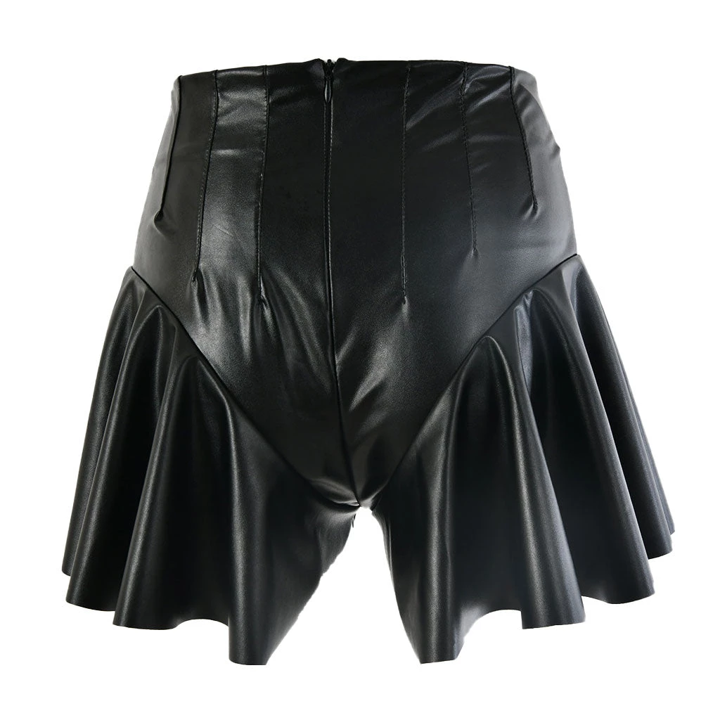 To rock a street look, try opting for this pair of leather shorts. Crafted with PU leather and polyester, stand out in flattering ruffle wide-leg cuffs, featuring a high-rise waistband trimmed with a concealed zip fastening to the rear, an A-line silhouette trimmed with seams. Find more unique women’s leather shorts or trendy clothing in our boutique, and wear it with anything with a basic tee and a pair of strappy stilettos for a modern street look.