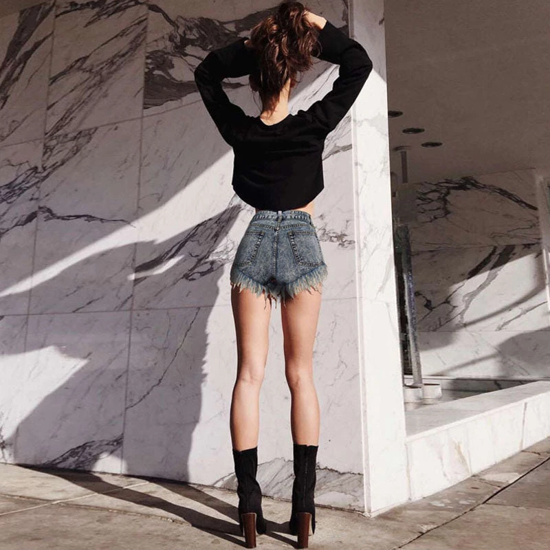 This vintage pair of denim shorts will not go out of style. Made of blend denim and polyester, stand out in exposed interior packages, featuring a high rise waistband trimmed with belt loops, a button closure along with a concealed zip fastening to the front, classic five pockets, and a super short length along with front shredded details at front and frayed hems. Find more trendy women’s denim shorts or clothing in our boutique, and put on a midriff top for a unique street look.